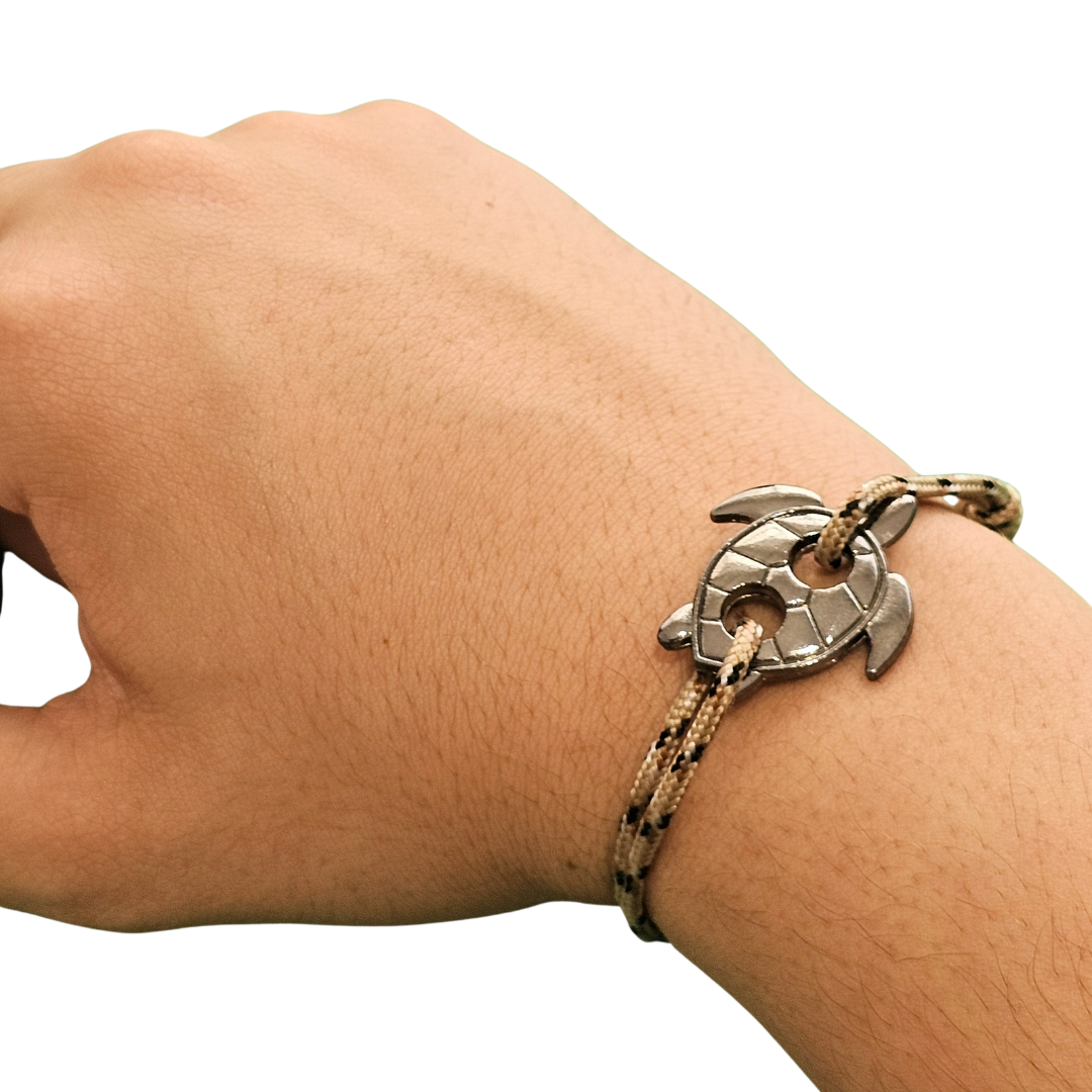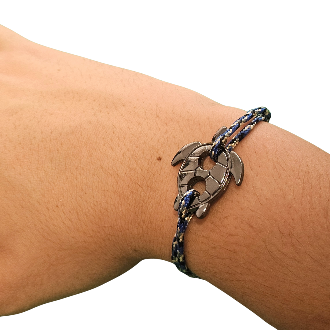 Men’s bracelet made of rope with a decorative turtle charm.