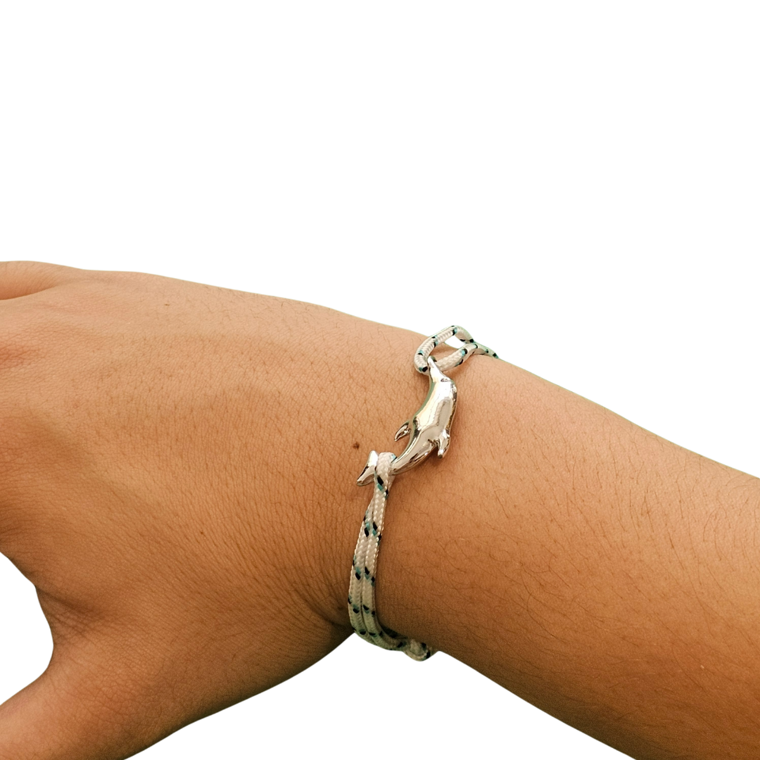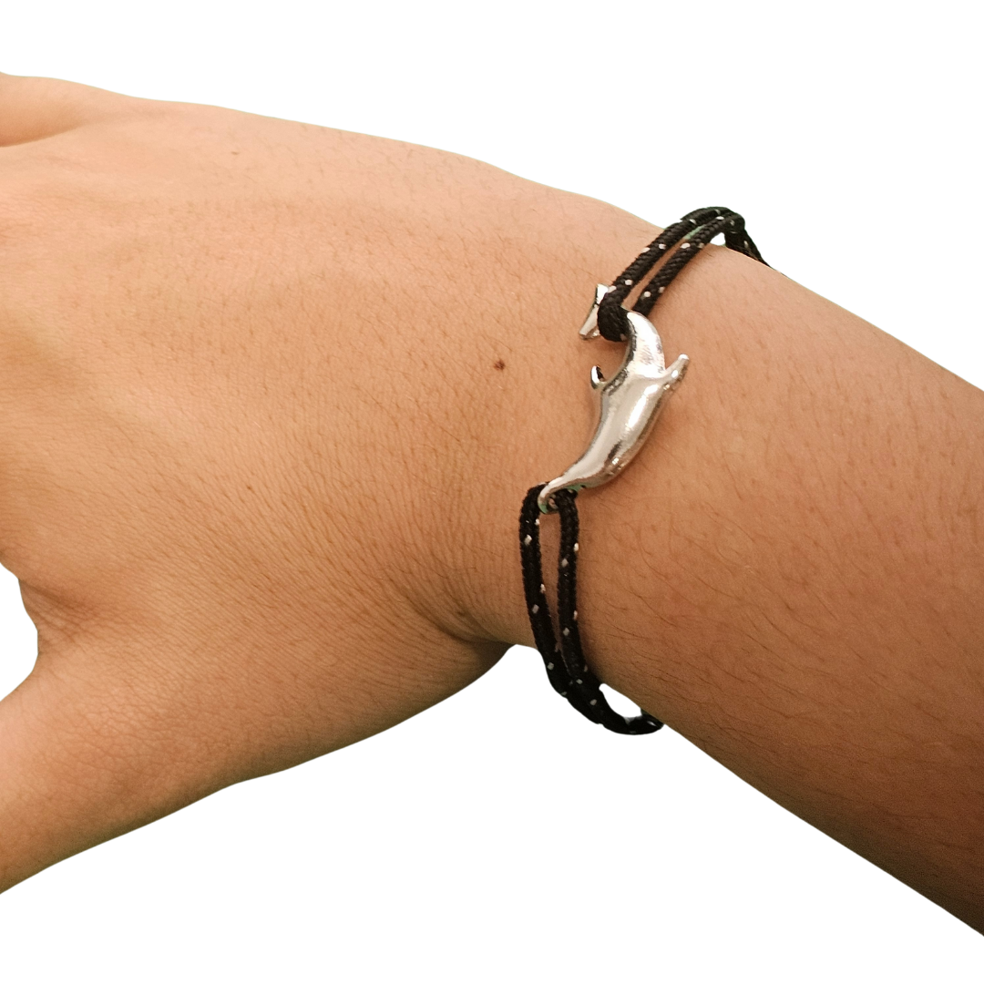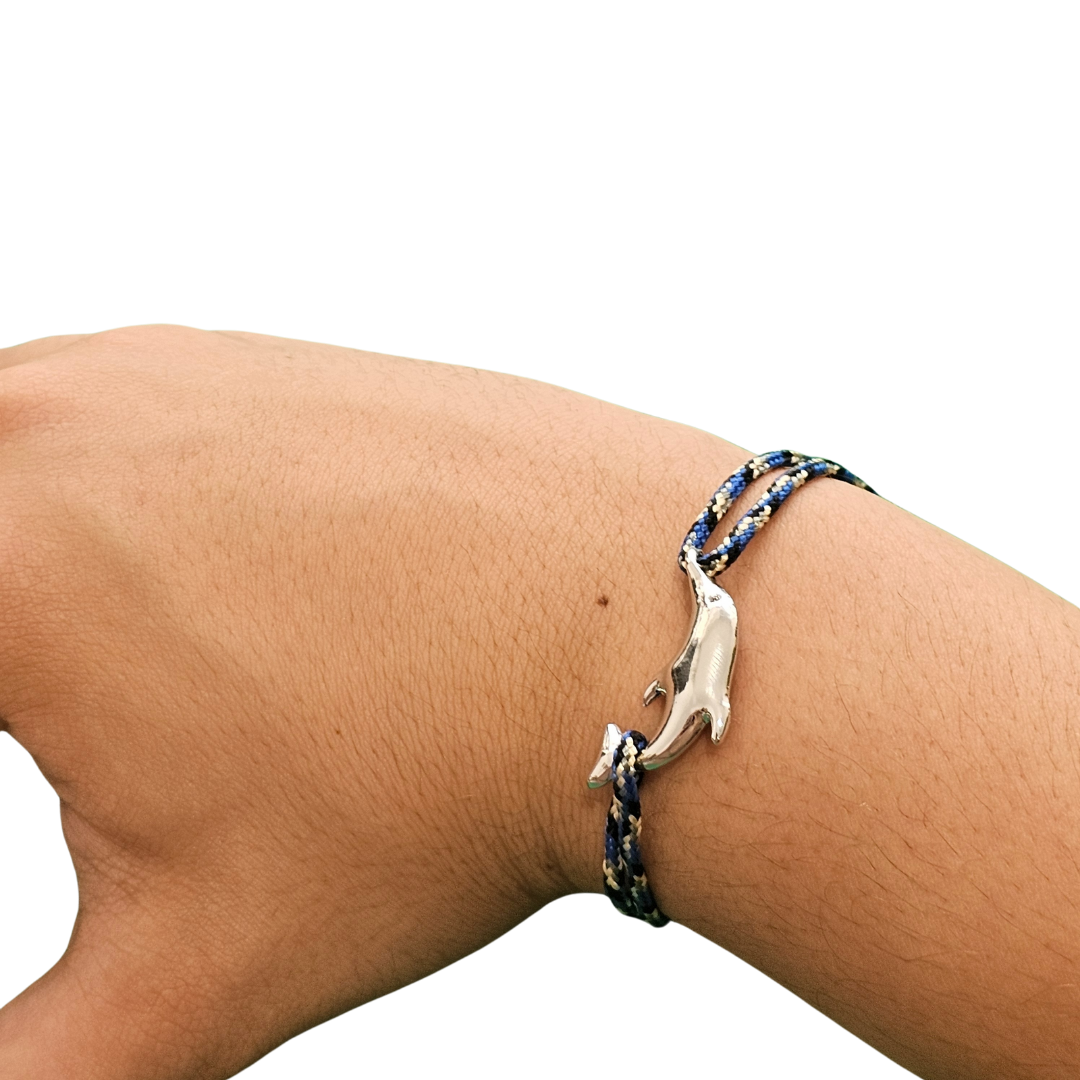 Men’s bracelet made of rope with a dolphin clasp.